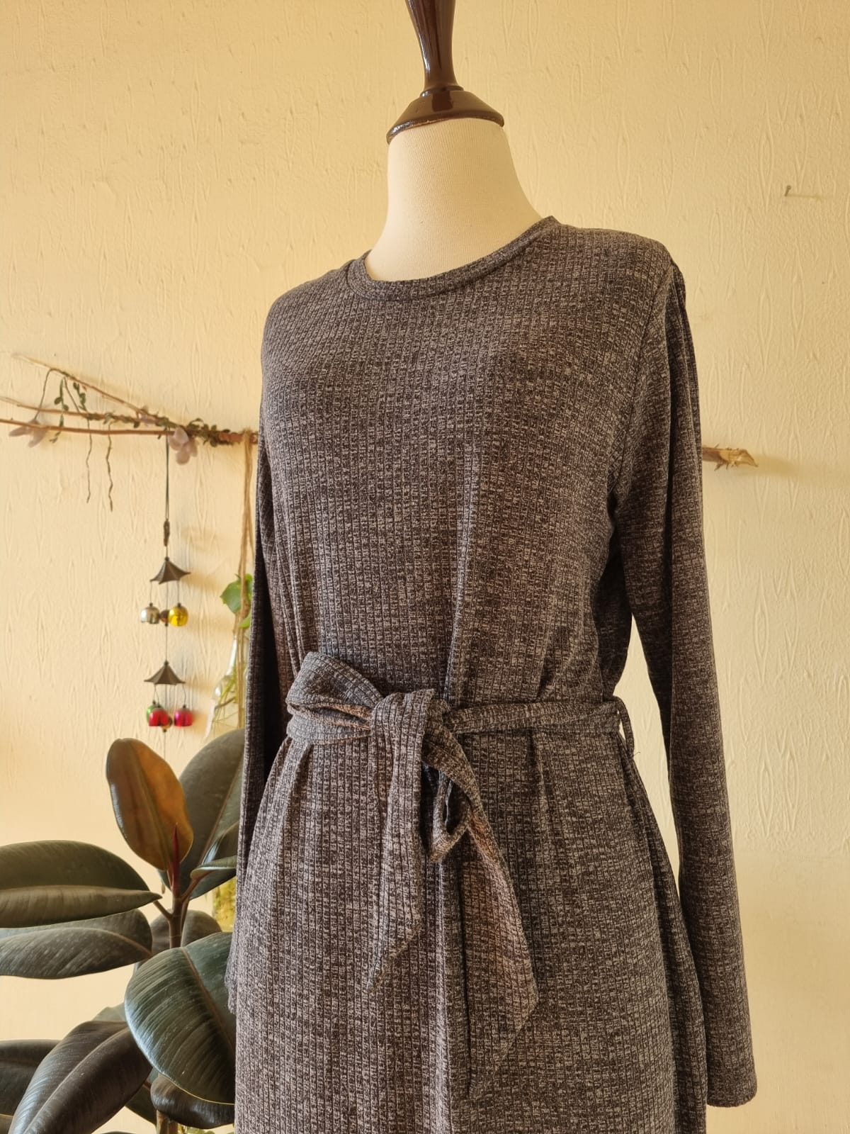 F&F Midi Dress UK 16 Dark gray and black Tie waist side cut Loose fit long sleeve knitted sweater Chest 23–24 Length 48 Warm and cozy Excellent condition Price 2200/-