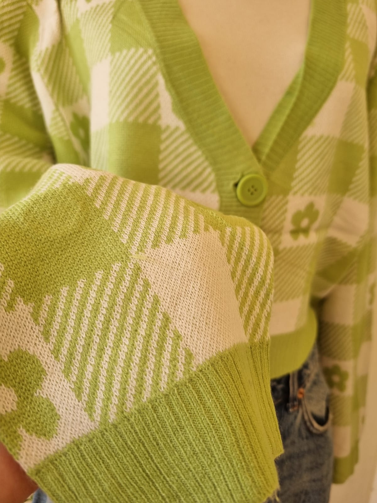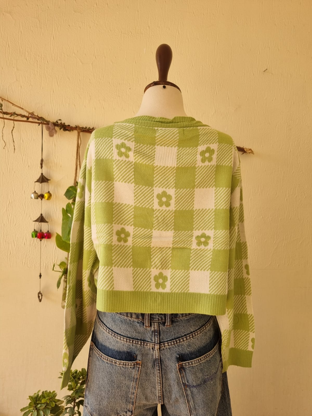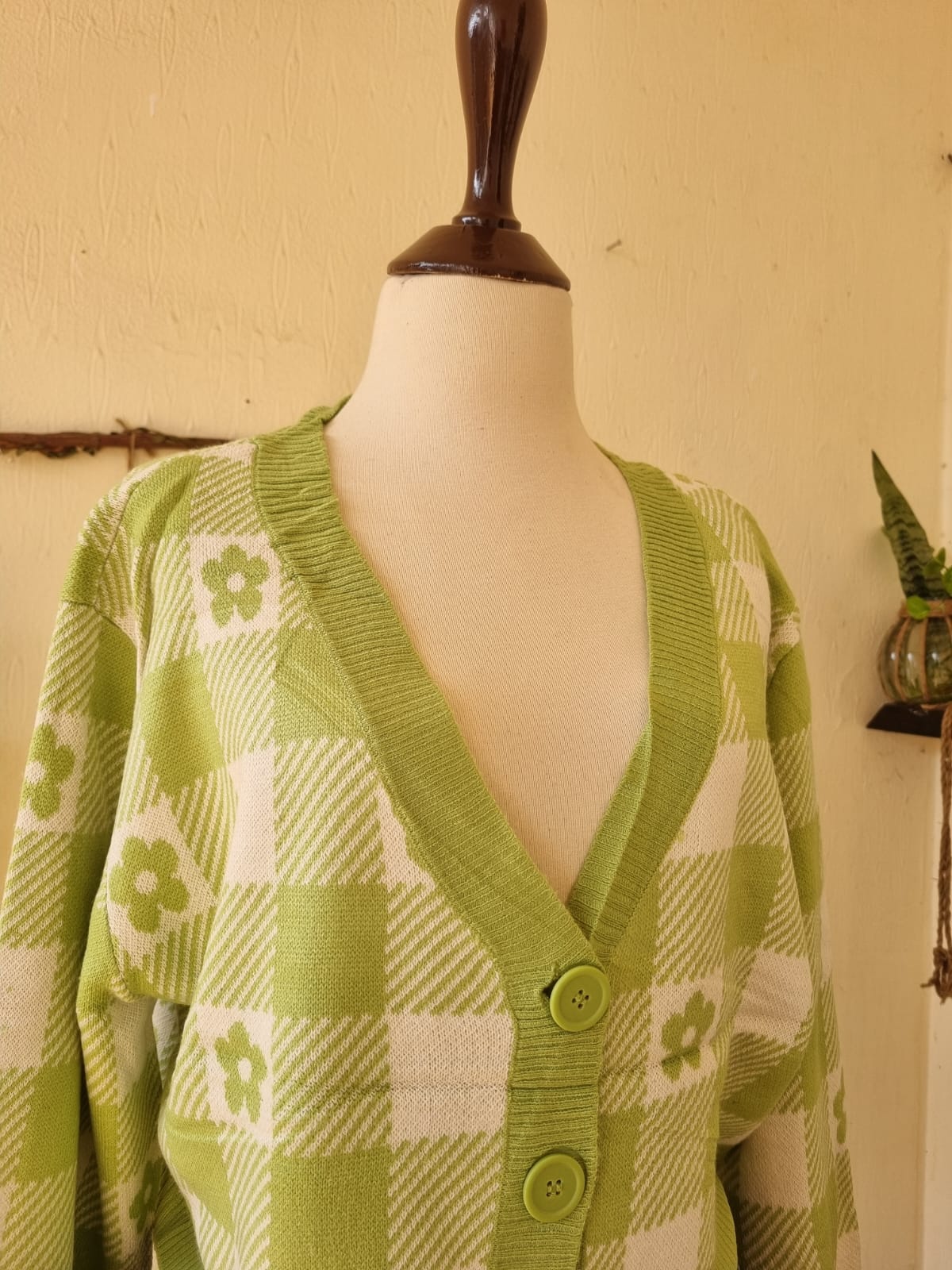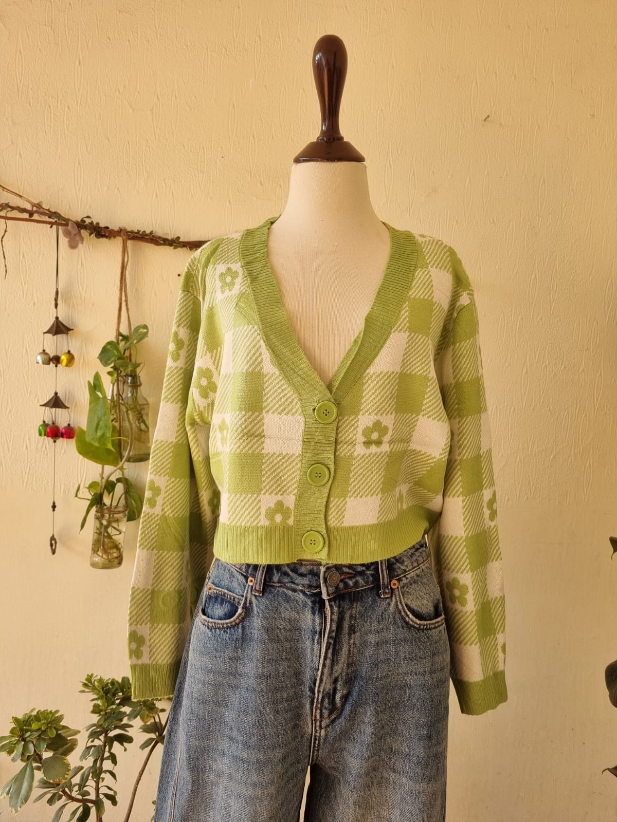 A warm wool cropped cardigan from House Brand, medium size with chest 23 and length 17. Soft, stylish, and perfect for layering. In excellent condition. Price 1350/-
