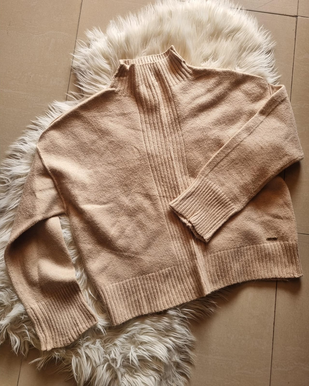 Beige cropped sweater, warm wool, excellent condition like new. Chest 24″, length 22″. Price 1550/-