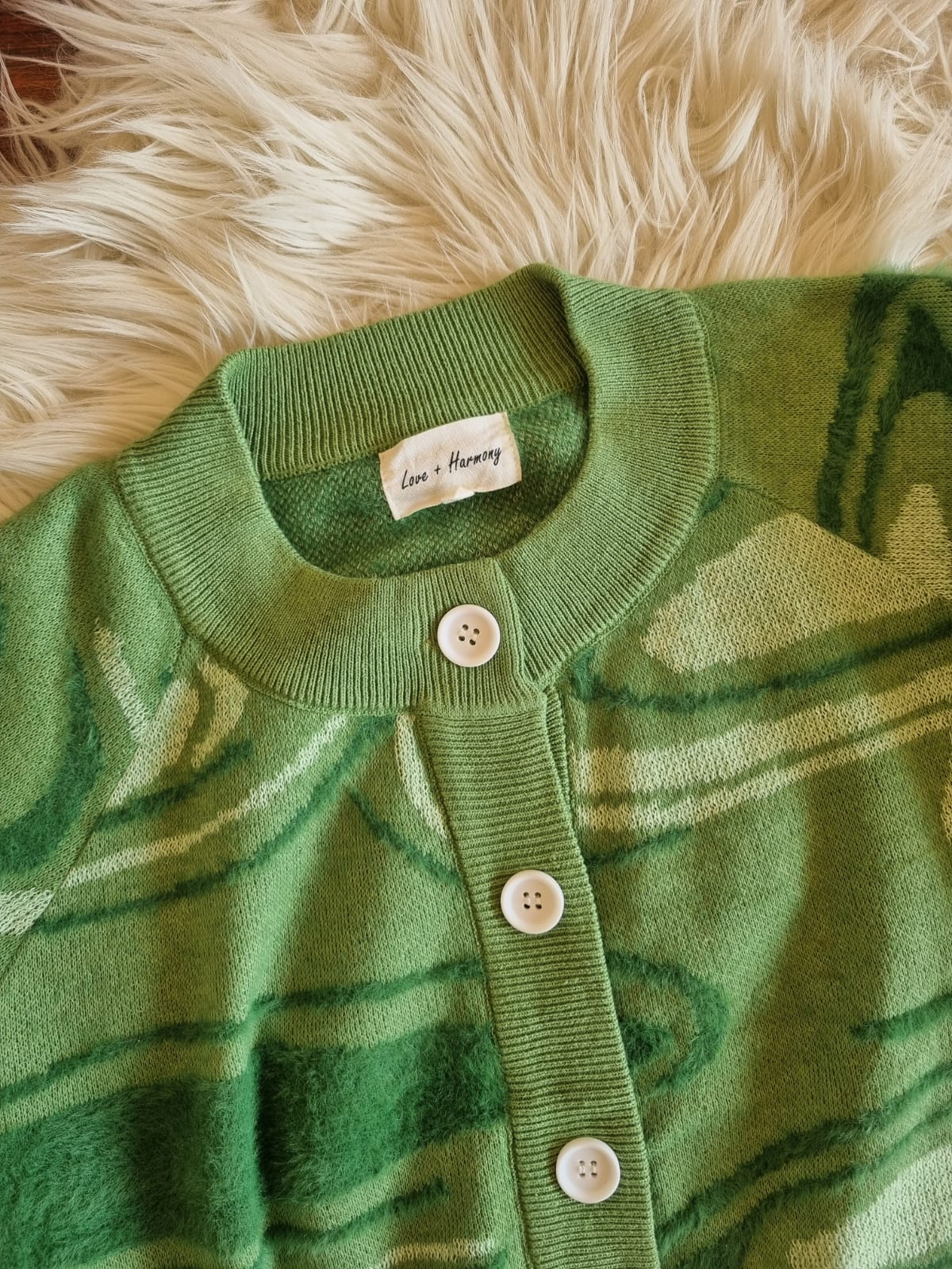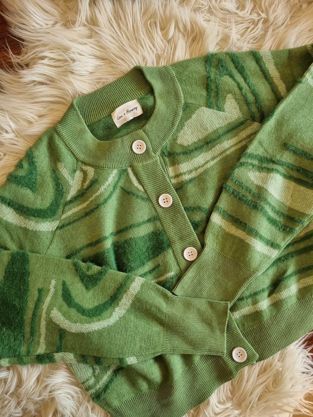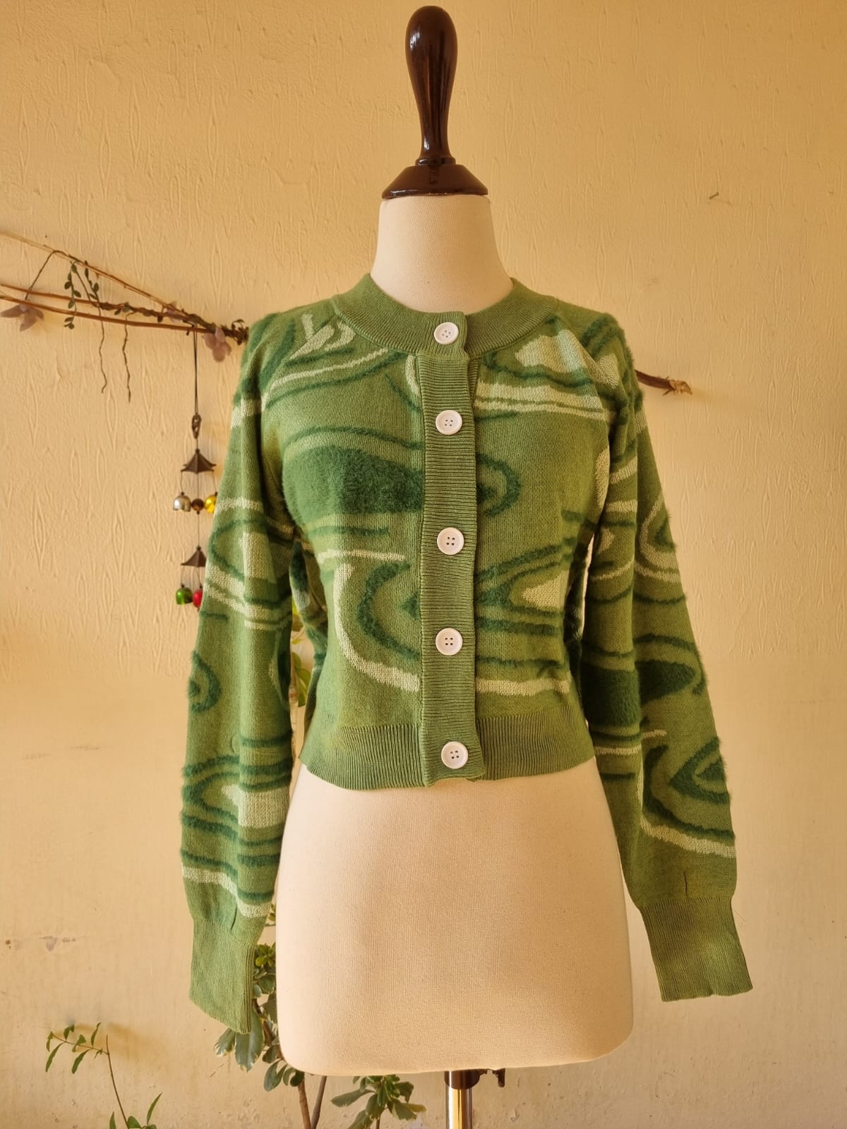 A cozy wool button-down cropped cardigan from Love Brand, chest 22 and length 18. Soft, stylish, and perfect for layering. Excellent condition. Price 1550/-
