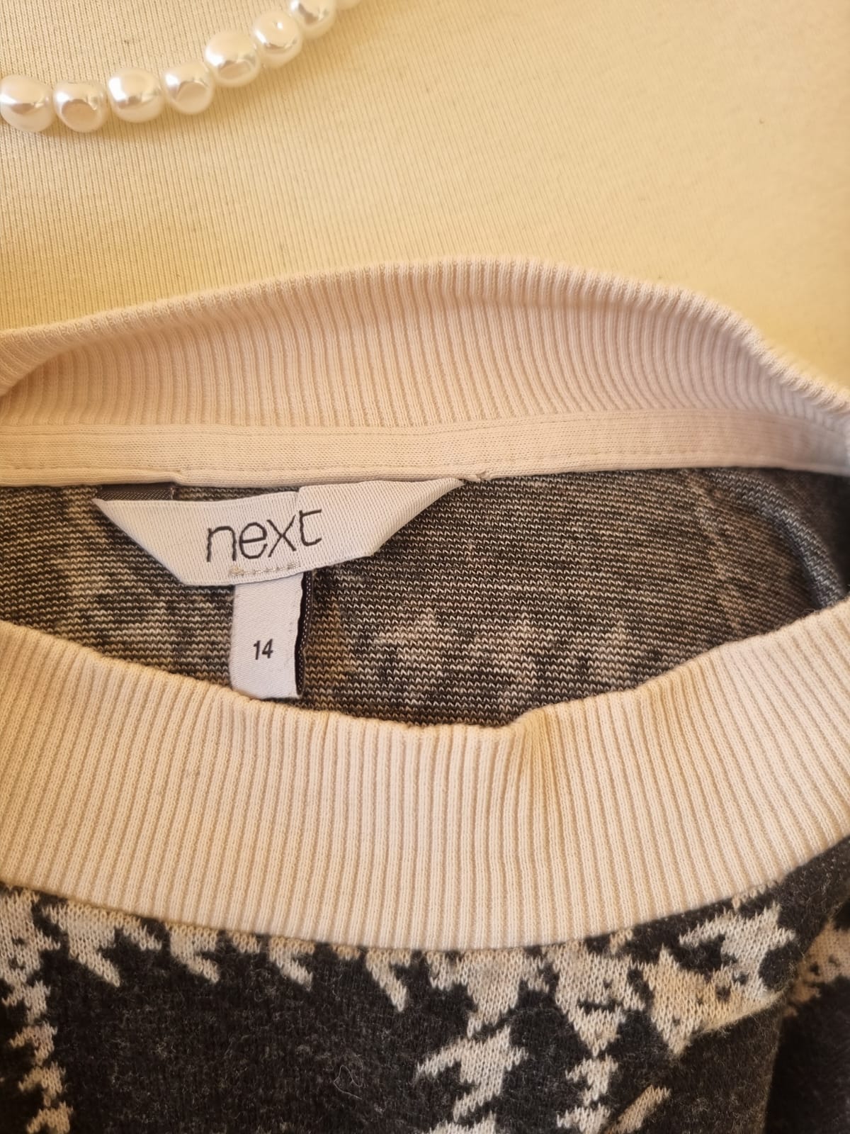 A cozy medium-size Next sweatshirt, perfect for winter. Chest 22 and length 37. Warm, soft, and in excellent condition. Price 1350/-
