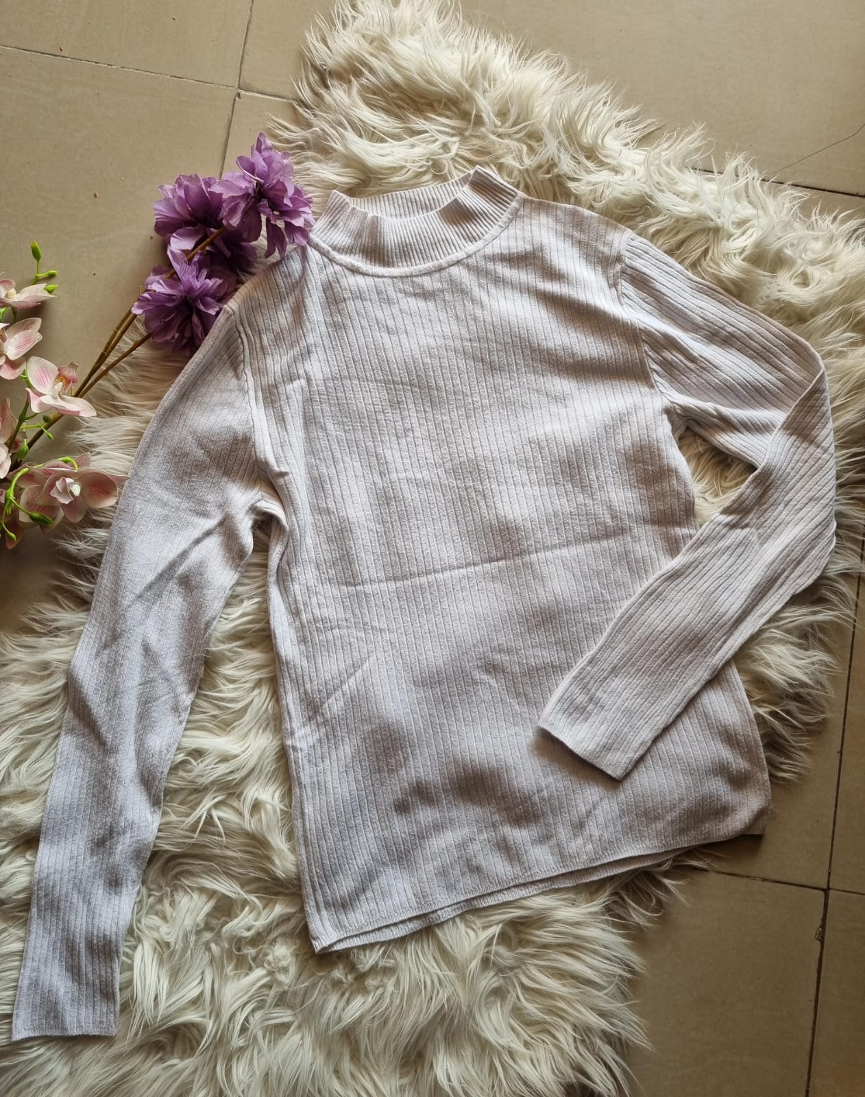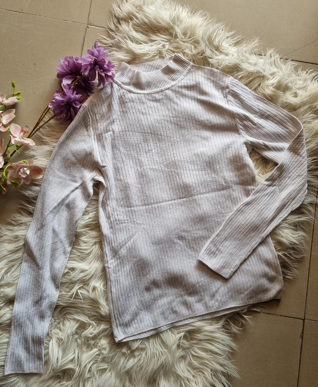 Warm and stylish, this Primark white turtleneck wool knit fits medium size. In excellent condition, it’s perfect for layering or wearing alone, combining comfort with timeless style. Price: 650/-