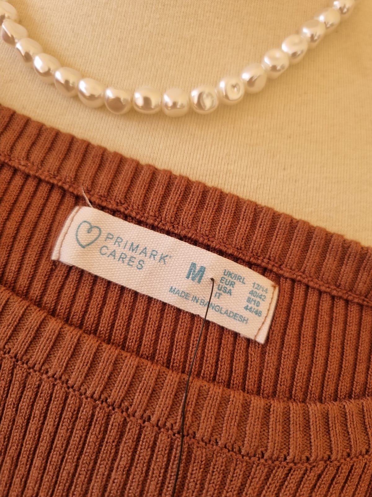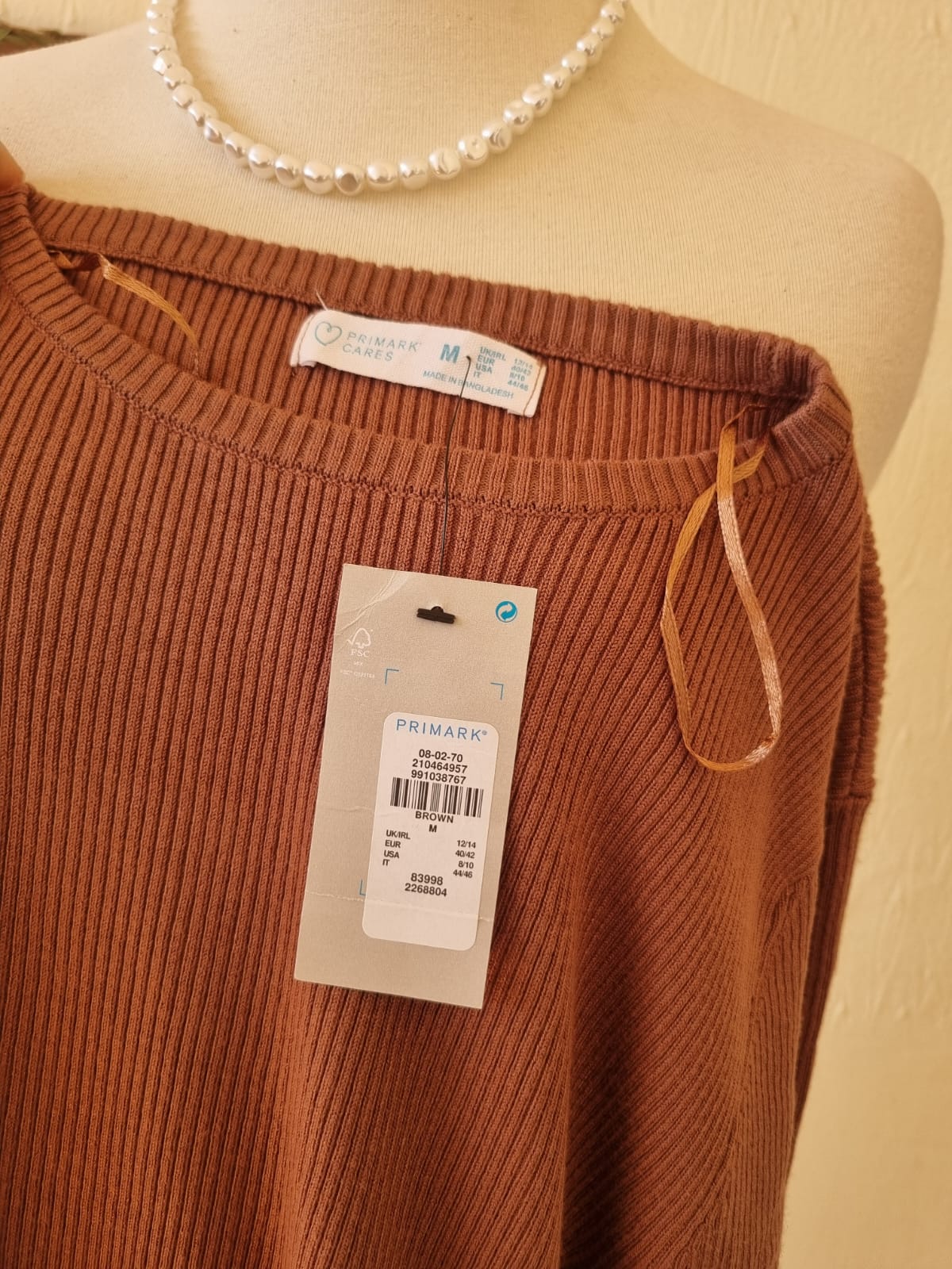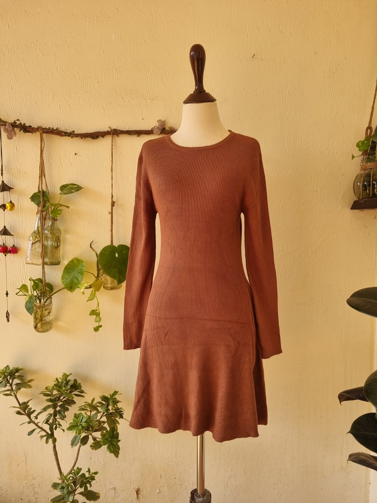 A tagged Primark winter dress in medium size with chest 20–22 and length 36. Warm, comfy, and perfect for cold weather outfits. Price 1990/-