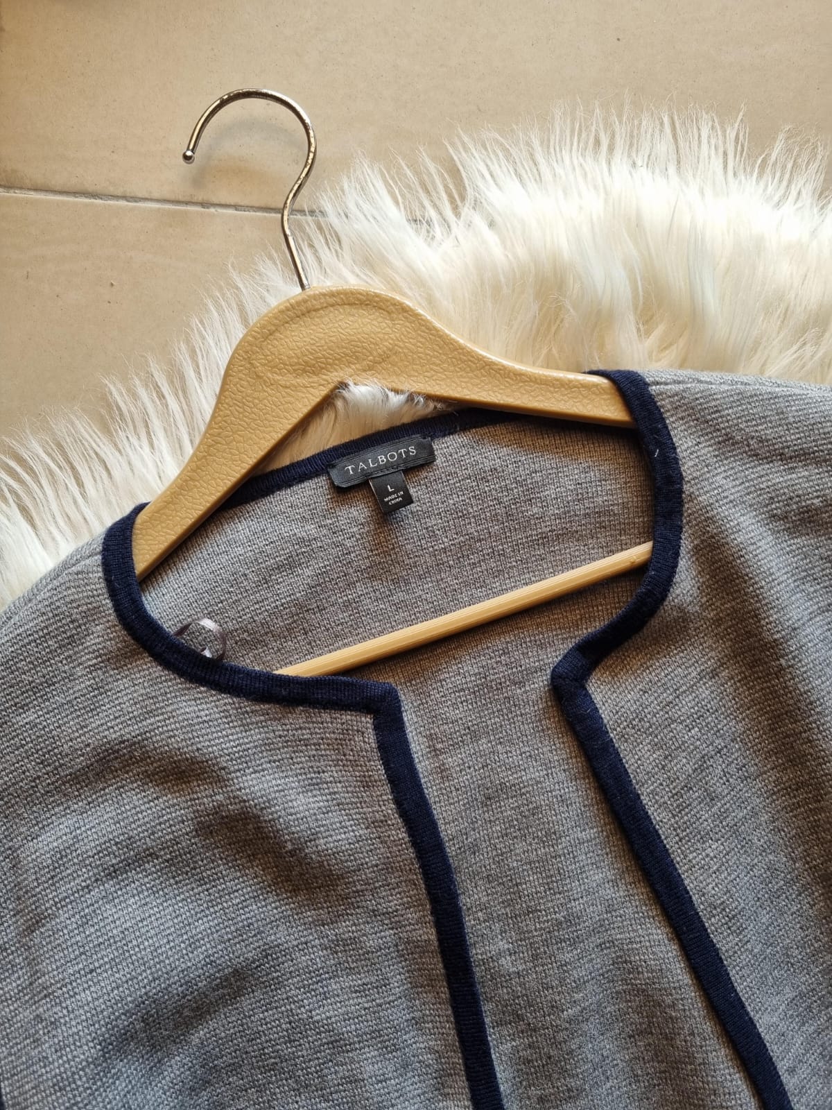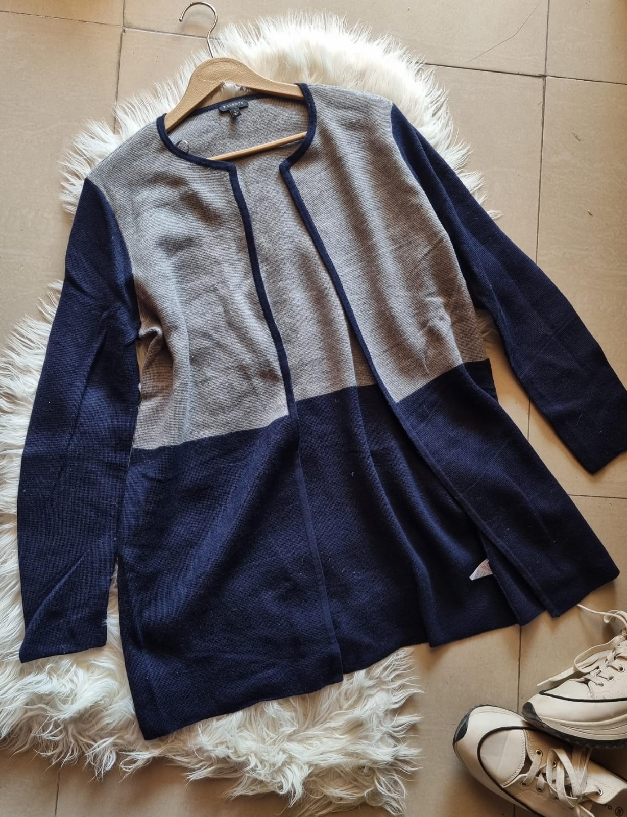 A warm wool cardigan from Talbots in XL size with chest 22–23 and length 32. Soft, cozy, and perfect for layering. Excellent condition. Price 1550/-