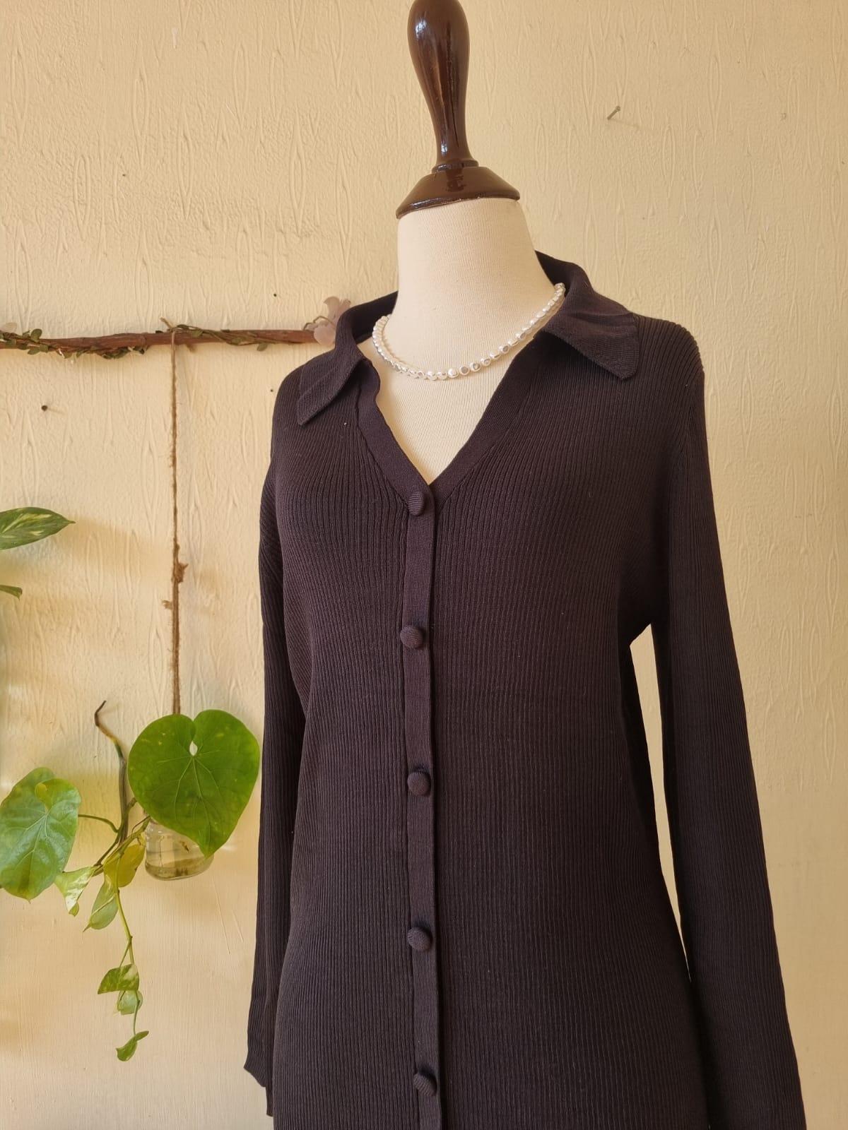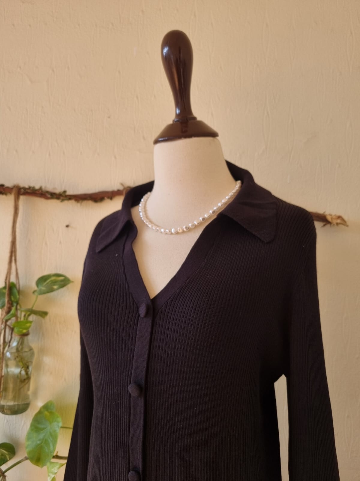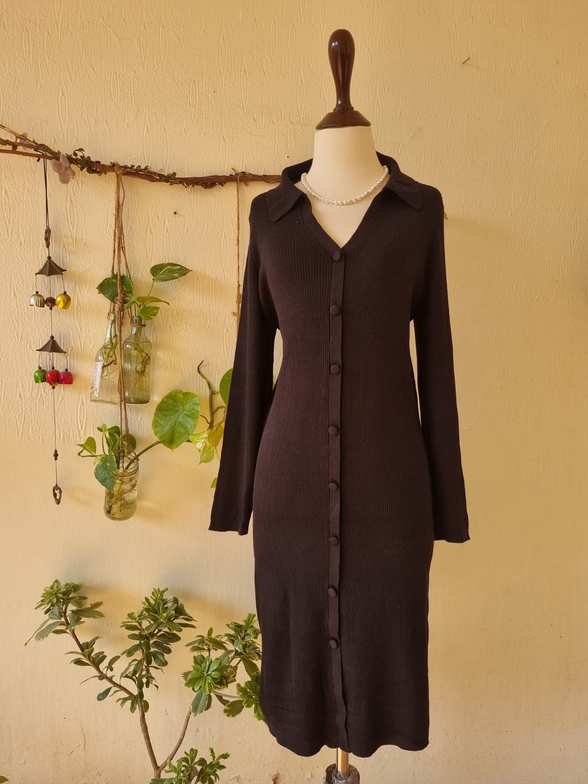 TU Women Midi Dress UK 16 Jet black High slit button-down Ribbed viscose blend Knitted Side cut Chest 21–23 Length 43 Excellent condition Price 2250/-