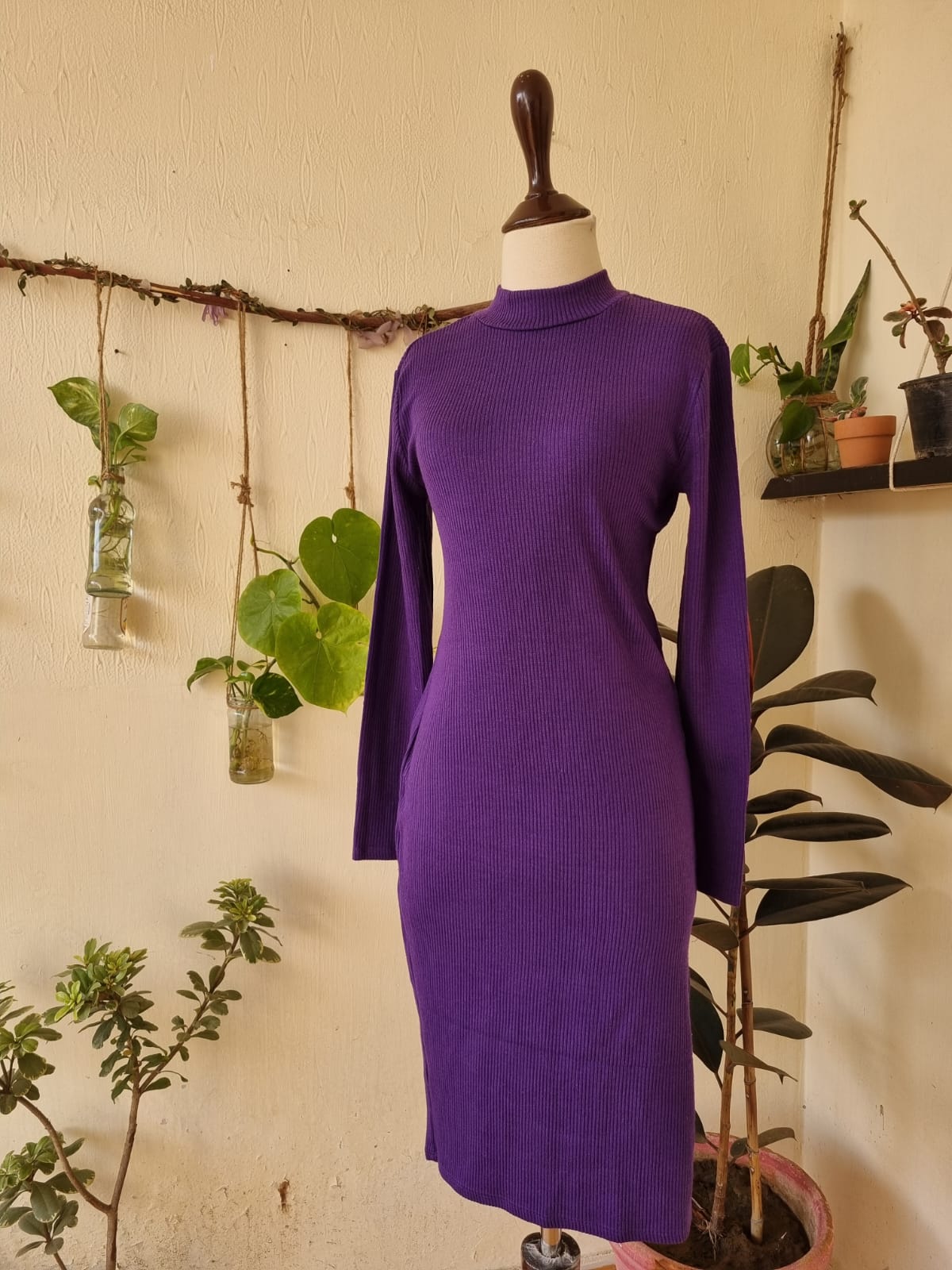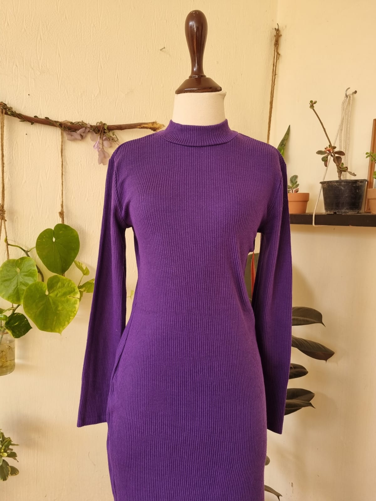 Turtleneck Ribbed Sweater Dress | Bodycon Fit | Long Sleeve | Size Small–Medium | Length 41″ | Excellent Condition | 1850/-