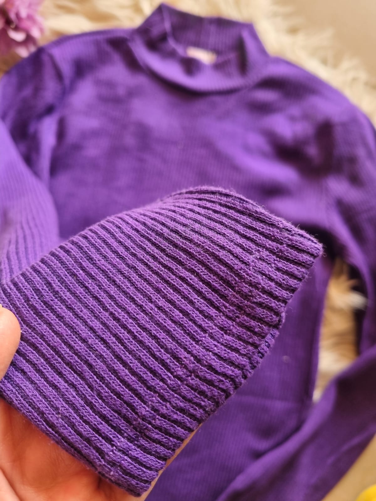 A stylish turtleneck ribbed sweater dress featuring a flattering bodycon fit, long sleeves, and a cozy design perfect for cooler days. Fits Small to Medium, with a 41″ length. In excellent condition and ideal for both casual and chic looks. Price: 1850/-